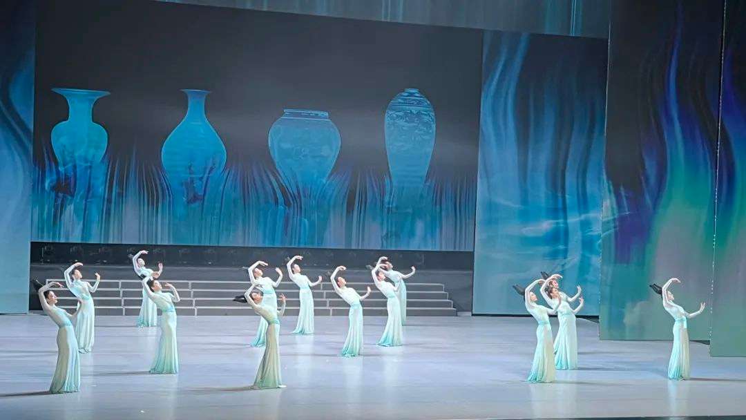 ↑舞蹈《磁州窑影》身姿翩跹展现出青白瓷柔美含蓄的东方神韵,舞者们灵动的舞姿与瓷器的独特韵味交相辉映,诠释了磁州窑千年窑火不息的独特魅力。